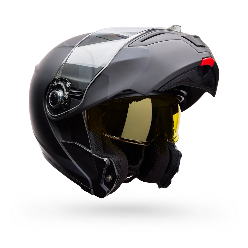 The new SRT-Modular combines the quality construction of the SRT – fiberglass shell, recessed EPS speaker pockets, a broad range of sizing options and Panovision Class 1 optics – and adds in the versatility and convenience of a modular helmet. All the protection of a quality full-face when you need it, as well as the ease and accessibility of an open-face for when you want to face the world head-on. SRT – putting the Sport back in Sport Touring. Includes clear faceshield. Availability, certification, color, and pricing may vary per region. If outside of the USA, please check with your authorized local dealer for more information.