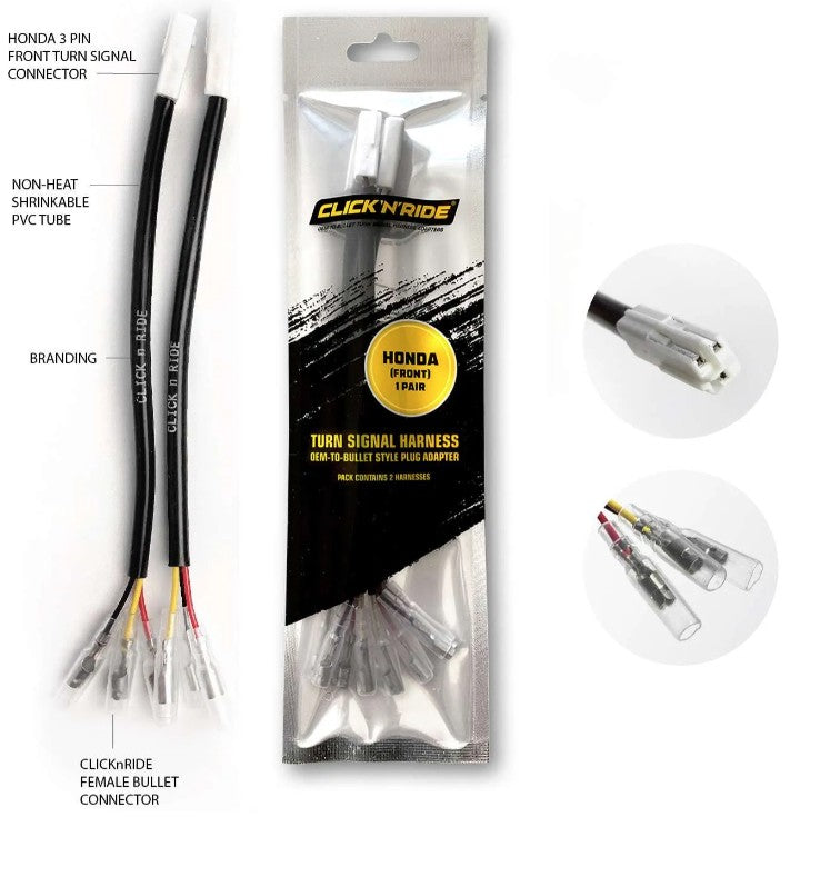 CLICKnRIDE® Plug & Play Harness Converters allow you to keep the OEM connectors that come with your bike and abolish the need to cut any wires or install additional connectors.