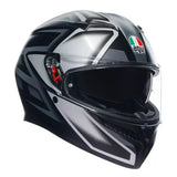 An AGV icon, evolving towards perfection. K3 is AGV’s full-face road helmet that takes all the characteristics of a versatile, safe helmet to outstanding levels. It offers safety for all, at the highest levels – the shell made of high-resistance thermoplastic material, the multi-density EPS and the details such as the collarbone-protection profile and the protective visor allow K3 to obtain the strict ECE22.06 homologation. Due to the AGV Extreme Safety construction protocol, K3 meets the requirements of the most recent international standards and then some. Its strength lies in its versatility. K3 is designed to put in its best performance in all situations. The built-in sun visor, which can be operated conveniently with gloves on, assists when it’s too bright, and doesn’t block the front ventilation when it’s in the rest position. The Pinlock Max Vision antifog system guarantees maximum visibility even on the wettest and coldest days, when the temperature difference between the environment and the inside of the helmet could cause the visor to fog up dangerously. Not with K3. The Ultravision visor also guarantees a 190° horizontal field of vision, so you can see obstacles, the road and everything in front of you earlier and better. K3 is prepared for the installation of communication systems. The Eyewear Ready interior design allows you to comfortably wear your eyeglasses or sunglasses while riding. Comfort boosts performance. The aerodynamic profile of the K3 is designed to achieve a dynamic weight of zero at a cruising speed of 130 km/h. It means lower weight and less strain on the neck muscles, for maximum concentration on riding. The interiors, made of 2DRY material with rapid absorption of sweat and moisture, can be customized, to personalize the fit to the full and maximize how comfortable it feels. The ventilation achieves maximum efficiency through the air vents at the front and on the chin, precise and easy to operate with gloves on. The practical micrometric steel closing system permits quick, safe adjustment of the helmet fastening.